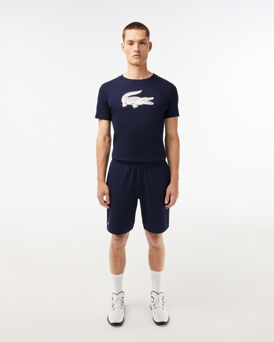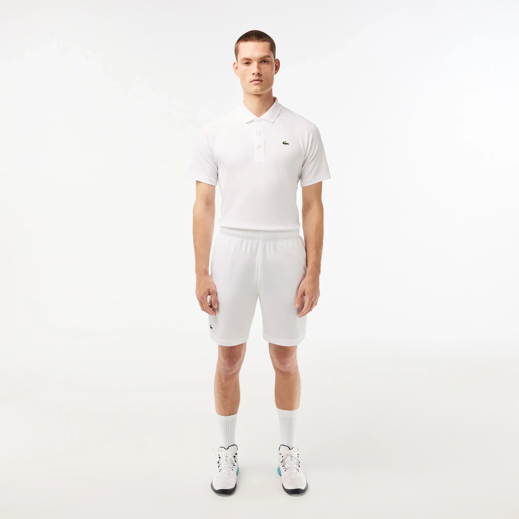 - Elasticized waistband with Lacoste lettering on back