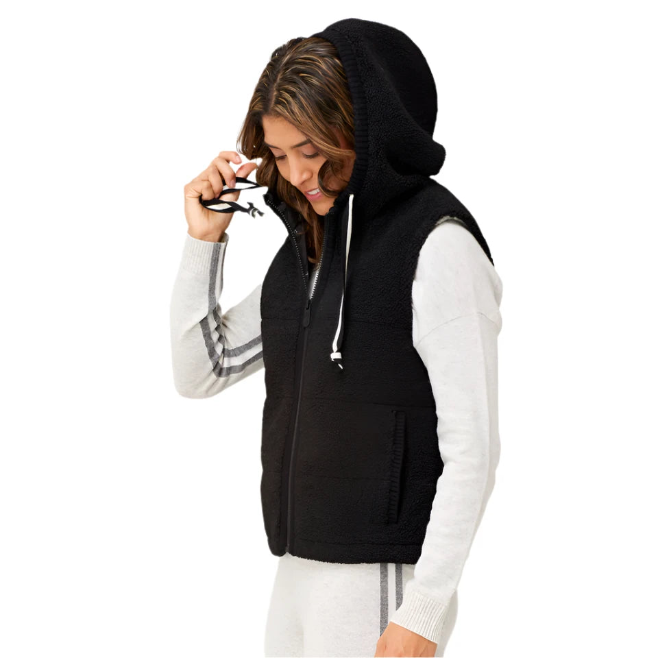 The Bella Vest features a super soft, luxurious Berber fleece texture that feels great when you zip it up. This vest's cool knit trims and hood will make this a layer you'll want to style again and again.