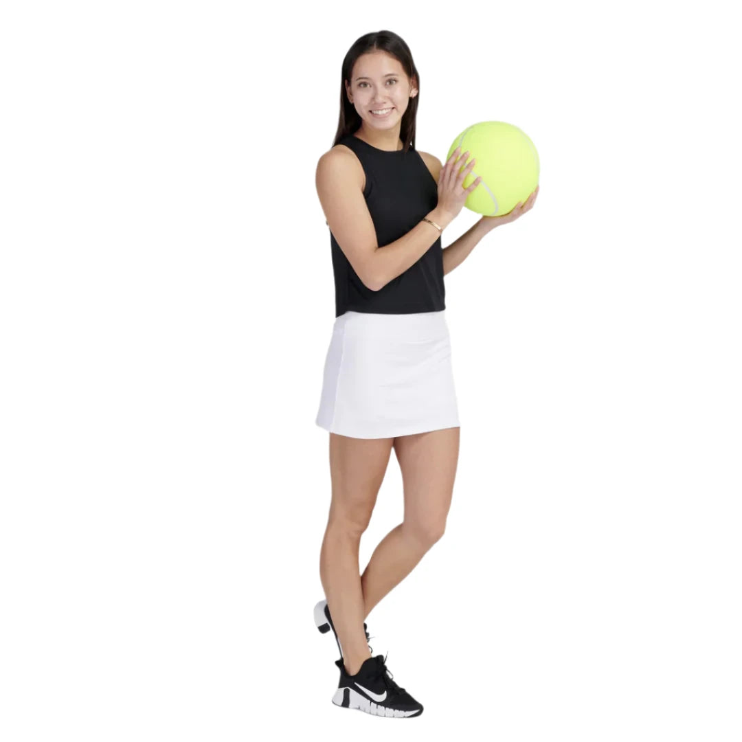 Our classic and functional straight cut skirt is perfect for easy movement on and off the court. This sporty design is offered in a variety of classic colours and feminine prints. Made from recycled, moisture wicking, high performance fabric, with built-in compression shorts for peak performance.