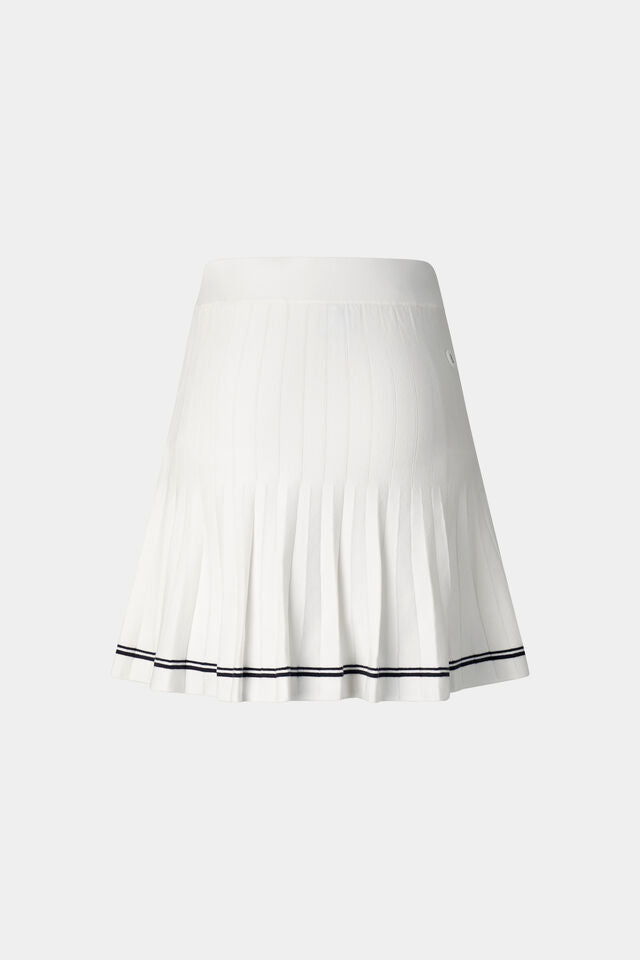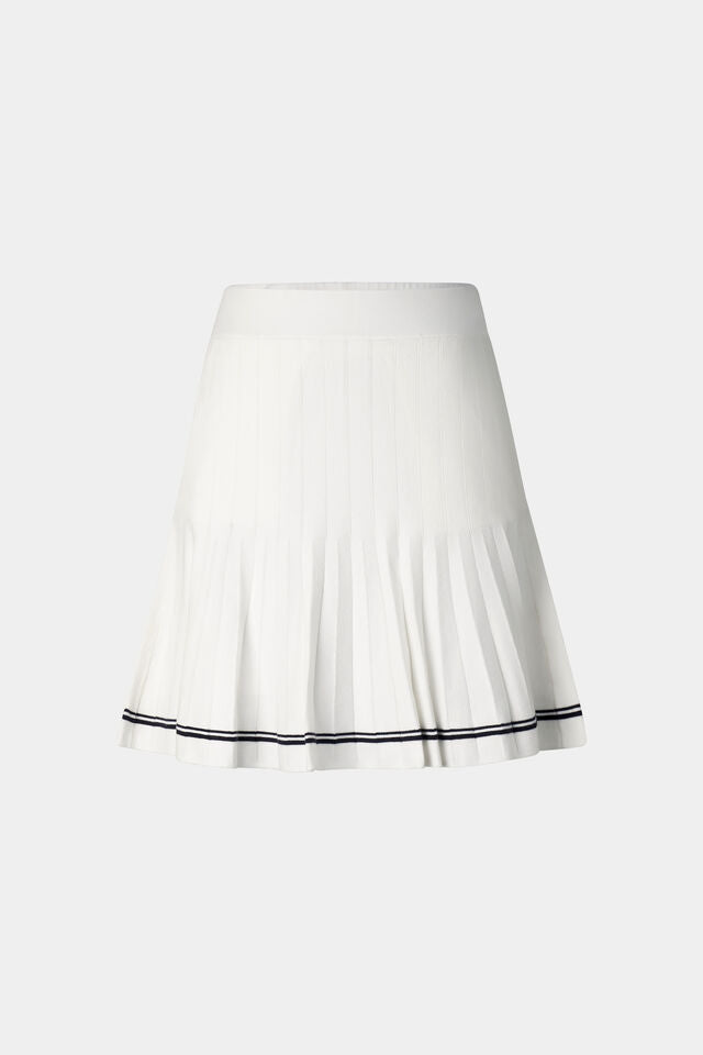 Featuring a pleated design with contrasting stripes, the Myra knitted skirt is a sophisticated piece for a variety of activities. The tech viscose fabric offers comfort, complemented by the ribbed waistband and stretchy shorts. A subtle rubber patch accentuates the modern design.